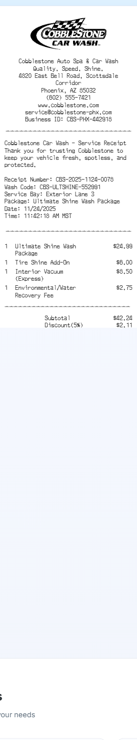 Preview our Cobblestone receipt template below. This example shows the realistic layout and formatting you can expect. Every field is fully customizable — adjust items, prices, dates, and more to match your needs.
