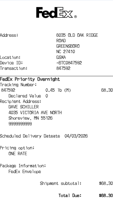 Preview our Fedex receipt template below. This example shows the realistic layout and formatting you can expect. Every field is fully customizable — adjust items, prices, dates, and more to match your needs.