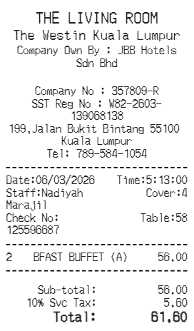 Preview our Westin receipt template below. This example shows the realistic layout and formatting you can expect. Every field is fully customizable — adjust items, prices, dates, and more to match your needs.